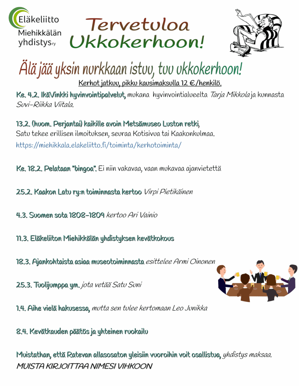 Kerhon ajankohdat ja tapahtumat kerromme tapahtumakalenterissa ja näet sen tästä
